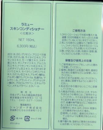 スキンコンディショナー 30~45日で,6ヶ月(冷蔵庫保存で1年)保存がきくので、未開封なら3年(09’2)。