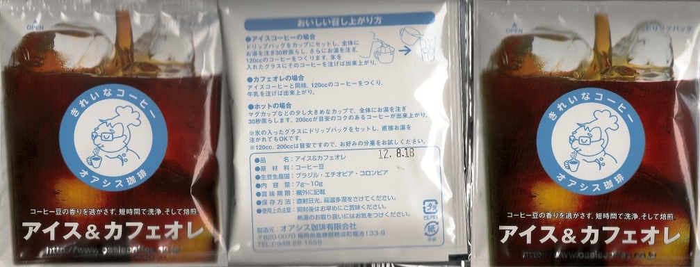 様々な角度から、「きれいなコーヒー」オアシス珈琲3袋との瞬間を堪能してみよっと♪